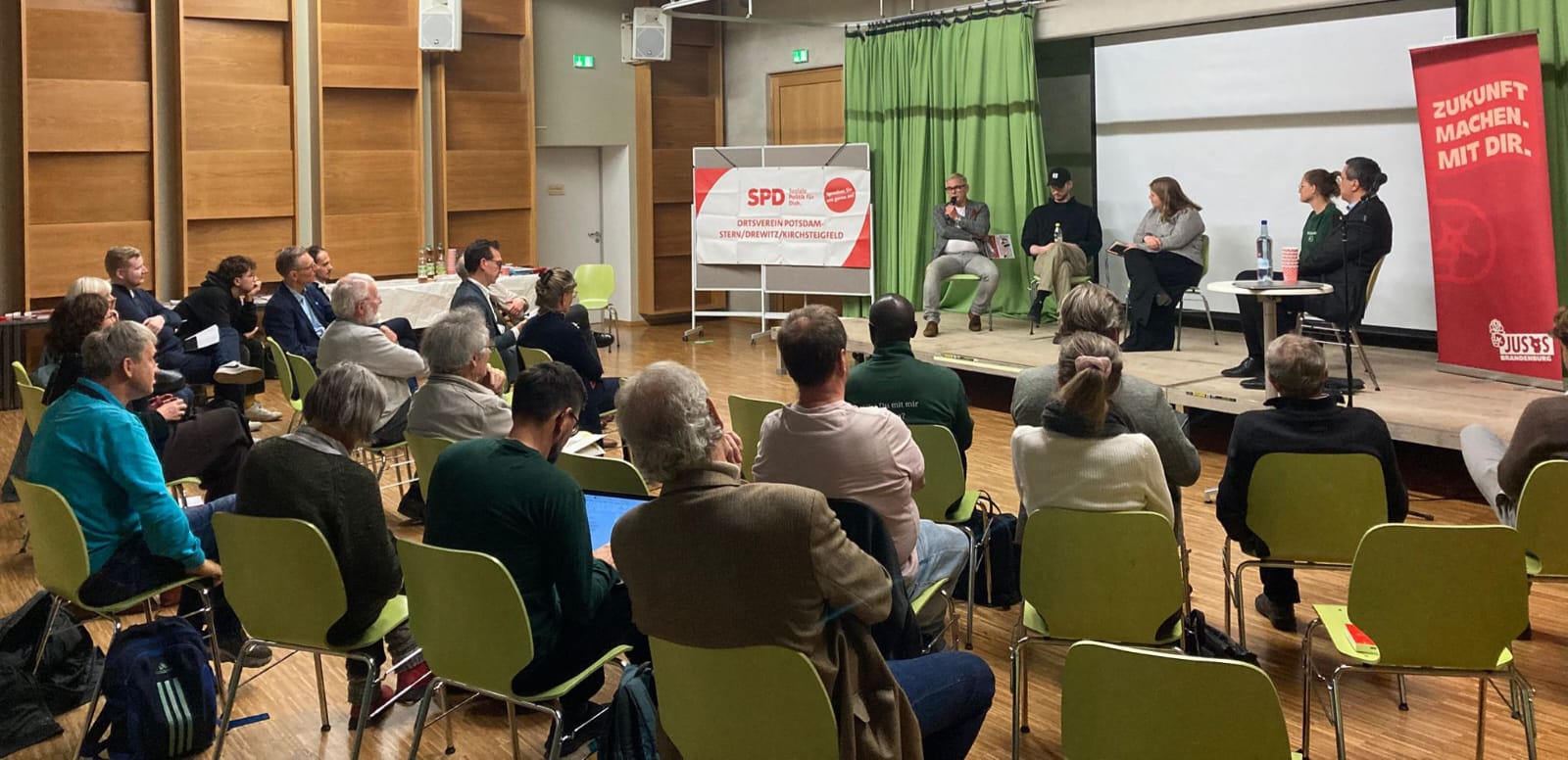Gemeinsam mit der SPD 60plus und den JUSOS Potsdam haben wir im Rahmen einer Veranstaltung am 06.11.25 gezeigt, wie solche Wohnformen in der Praxis funktionieren – mit inspirierenden Projekten und politischen Ideen, die sie möglich machen. Gemeinsam mit Experti:innen und Engagierten haben wir darüber gesprochen, wie gutes Wohnen für alle Generationen gelingen kann: bezahlbar, ökologisch und gemeinschaftlich.